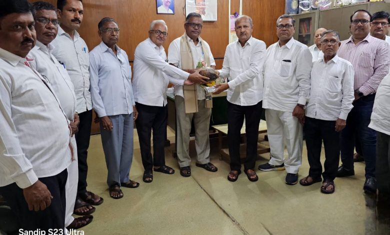 महाराष्ट्र राज्य साखर कामगार मंडळाचे उपाध्यक्ष डी.एम निमसे यांचा ज्ञानेश्वर, वृद्धेश्वर कामगारांच्या वतीने सन्मान.